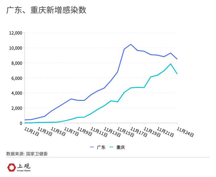 11月24日,广东、重庆两地是境内单日新增感染数最多的地区。