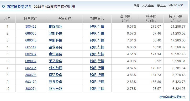 这个周末,市场都在讨论一个基金经理,海富通的吕越超老师。从其管理的海富通股票混合来看,截至去年年底,持仓基本为新能源板块股票。