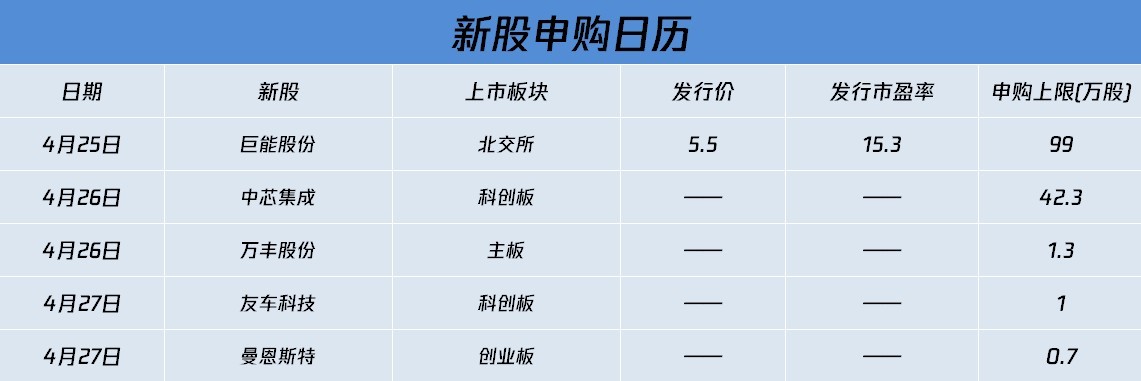 根据新股发行安排,本周有5只新股申购,包括沪市主板新股1只、科创板新股2只、创业板新股1只、北交所新股1只。