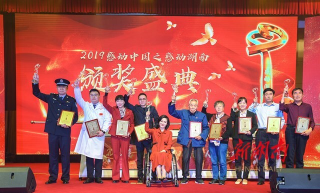(11月3日,10名获得2019年度“感动中国之感动湖南”人物称号的嘉宾合影留念。当天,2019年度感动中国之感动湖南人物评选颁奖典礼暨2020年度感动中国之感动湖南人物评选启动仪式在长沙举行。湖南日报·新湖南客户端记者 傅聪 摄)