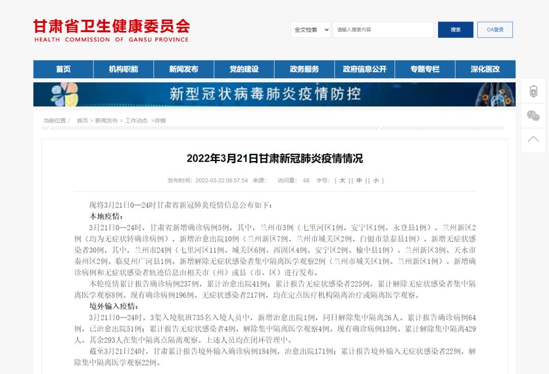 原标题:《3月21日甘肃新增5例本土确诊病例、30例无症状感染者,具体在……》