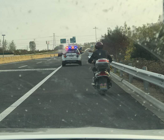 经询问,该男子上午刚刚拿到了驾驶证,又买了辆新摩托,心中按捺不住喜悦之情,就想驾驶新摩托上高速“遛遛”,上高速时全然不顾禁止摩托车上高速的标志和收费员的劝阻,一路狂奔,直到被民警拦截下来,民警对司机郭某的行为进行了严厉地批评,并依法对其违反禁令标志指示的违法行为给予罚款100元。驾驶证记3分的处罚。
