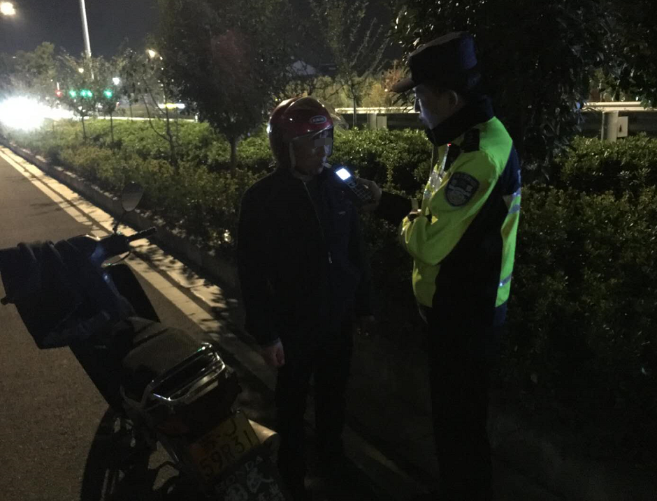 10月30日22时20分,民警在学校门口查获郑某酒后驾驶。