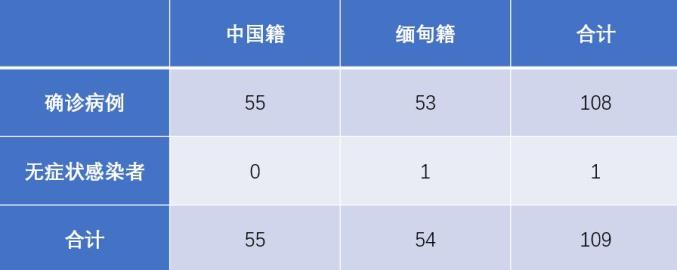 云南自7月4日报告本土确诊病例以来,截止8月23日24时,累计报告确诊病例118例(中国籍62例,缅甸籍56例),无症状感染者2例(均为缅甸籍)。其中,瑞丽市共报告确诊病例108例,无症状感染者1例,陇川县报告确诊病例10例,无症状感染者1例。