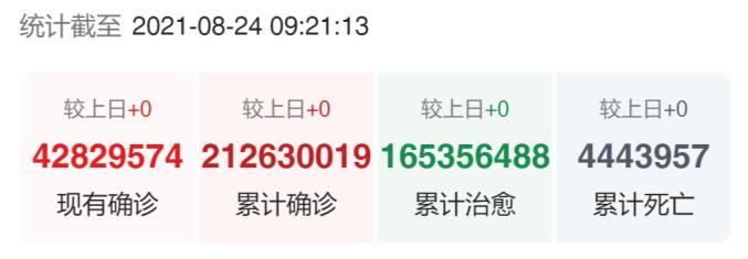 截至8月23日24时,据31个省(自治区、直辖市)和新疆生产建设兵团报告,现有确诊病例1634例(其中重症病例19例),累计治愈出院病例88417例,累计死亡病例4636例,累计报告确诊病例94687例,现有疑似病例2例。累计追踪到密切接触者1159314人,尚在医学观察的密切接触者35246人。