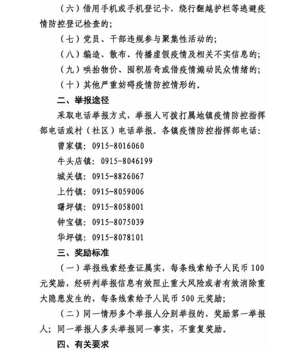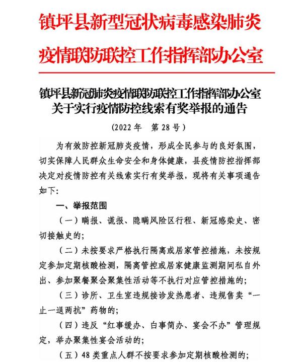 镇坪县关于实行疫情防控线索