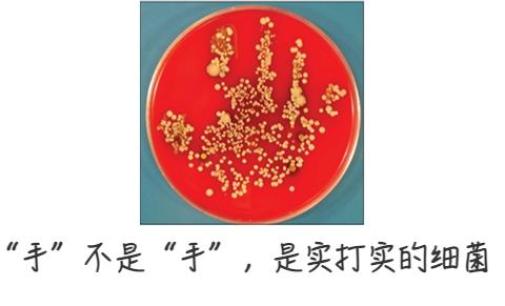 随后,将医护人员的手掌放在血琼脂培养基上,并在37°C下孵育24小时。可以看到的,细菌在细菌培养基的表面上长出了一张“手”!