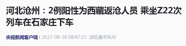 8月15日由西藏拉萨市开往北京西站的Z22列车,沿途经停太原市(8月17日3:54到站)、石家庄市(8月17日5:50到站),目前已在太原站、石家庄北站下车的旅客中发现多例新冠病毒阳性感染者。