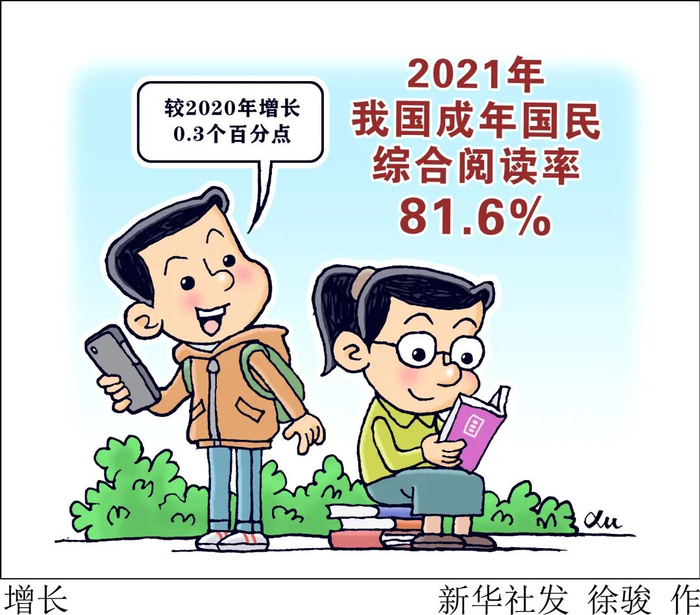 4月23日是世界读书日,第十九次全国国民阅读调查结果当天在京发布。调查显示,2021年我国成年国民包括书报刊和数字出版物在内的各种媒介的综合阅读率为81.6%,人均纸质图书和电子书阅读量继续上升,“听书”“视频讲书”等阅读形式为读书提供更多选择。