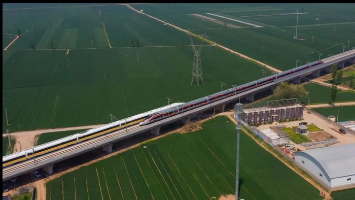据了解,该车作为高速动车组新技术验证平台参与CR450动车组研制先期试验,4月12日,在郑州至重庆高速铁路巴东至万州段成功实现隧道内单列时速403公里、相对交会时速达806公里;4月21日,在济南至郑州高铁濮阳至郑州段成功实现明线上单列时速435公里、相对交会时速达870公里,创造了高铁动车组列车明线和隧道交会速度世界纪录。这标志着纳入国家“十四五”规划的“CR450科技创新工程”全面展开。