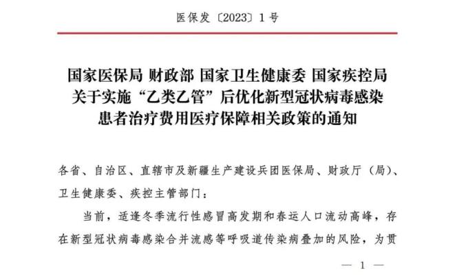 国家医保局、财政部、国家卫生健康委、国家疾控局今天发出《关于实施“乙类乙管”后优化新型冠状病毒感染患者治疗费用医疗保障相关政策的通知》。