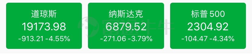 截至周五收盘,本周道指累计下跌17.3%,标普500指数下跌14.9%,纳指下跌12.6%,三大股指均创2008年金融危机以来最大单周跌幅。