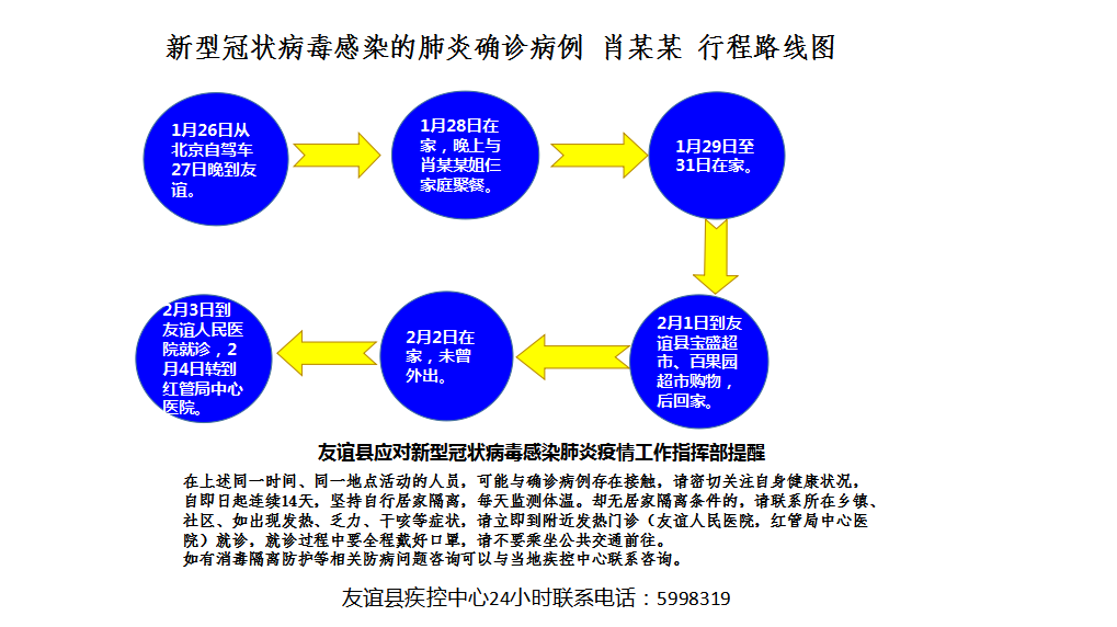 友谊县第二起家族性病例,徐氏家族,二代病例徐某某、曲某某(夫妻关系),在传染地点宝盛超市、百果园超市感染后,回家传染给三代病例徐某某(徐某某父亲)。
