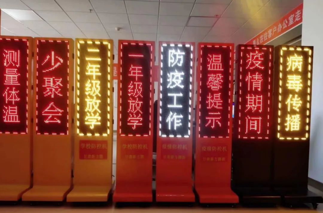 “疫情防控机”集成了:LED显示亮度高、同步将显示内容语音大声读出、电脑、手机、在线、无线上传内容、用户使用遥控器翻屏、有线无线两种供电方式、自带滑轮方便移动等特点,只需1人维护,只换不修,节省时间(返厂维修),不影响疫情防控播放;节能环保,功耗超低;适用场合广,亮度高,室内室外均可使用;集群管理,APP端(支持手机、PAD、PC)可控制开关机,节目上传群发,集成设备状态检测,故障检测,便于维护。