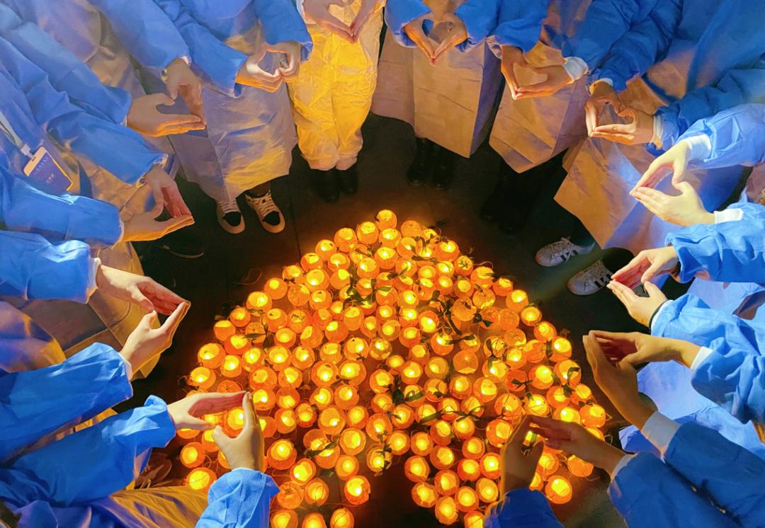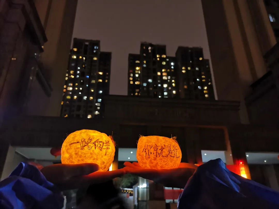 上百盏“小橘灯”拼出“石羊”“CDHT”等字样和图案。