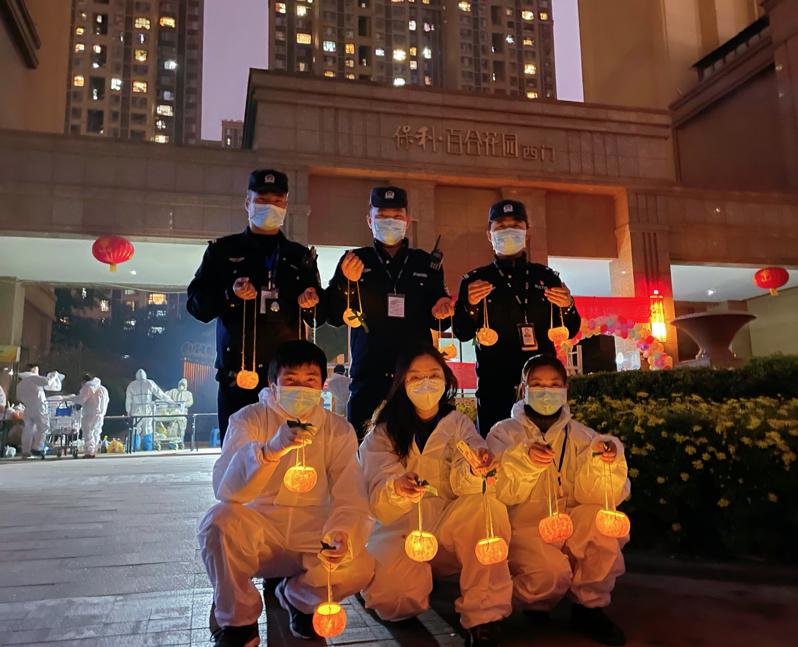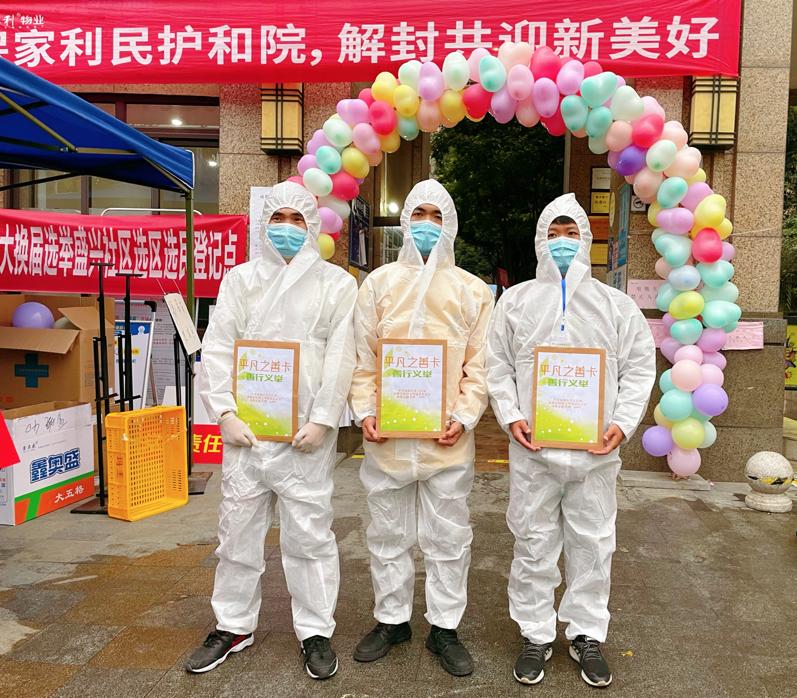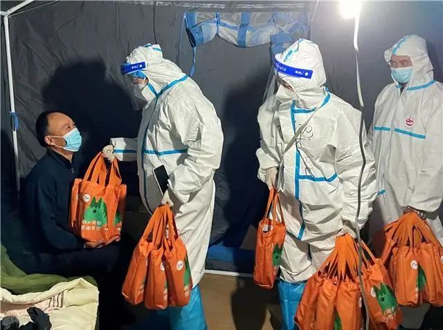 “在楼上就看见下面的志愿者和工作人员一直在忙碌,辛苦大家了。”